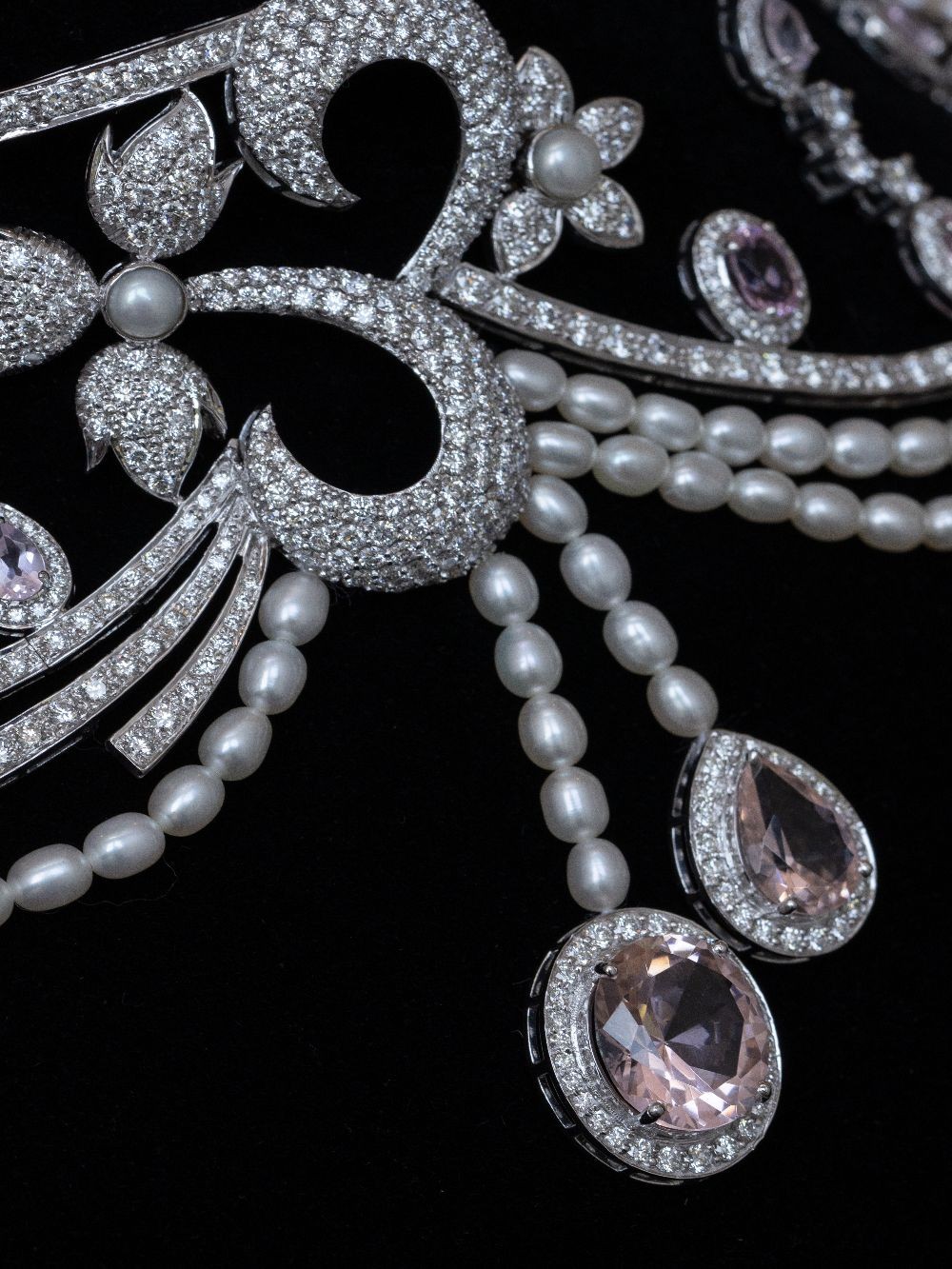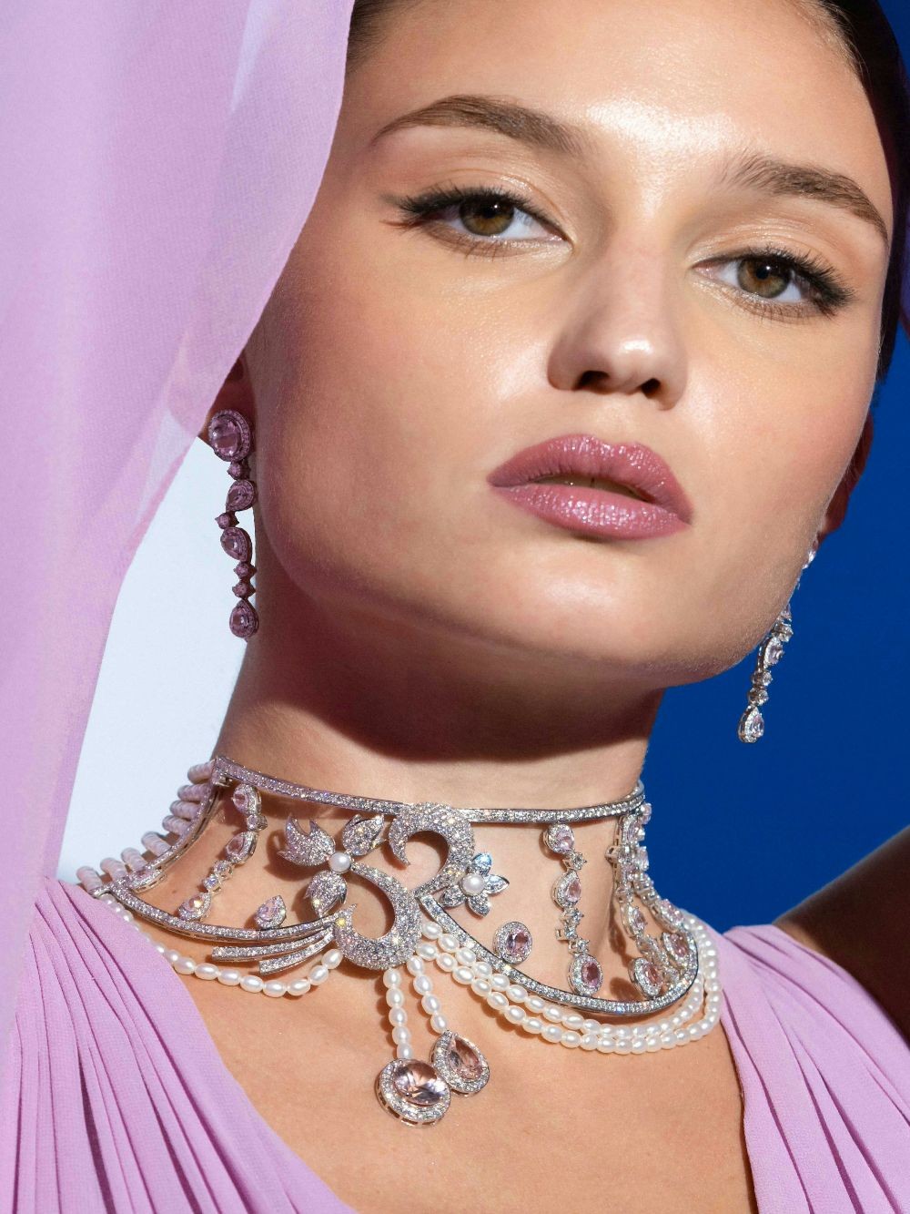 Inspired from the vintage treasures of the French Provence, the romance and the decorative Provençal style are reflected in the soft pink gemstones and the diamond-studded floral motifs. Specially curated for the red carpet moment to capture all the attention.