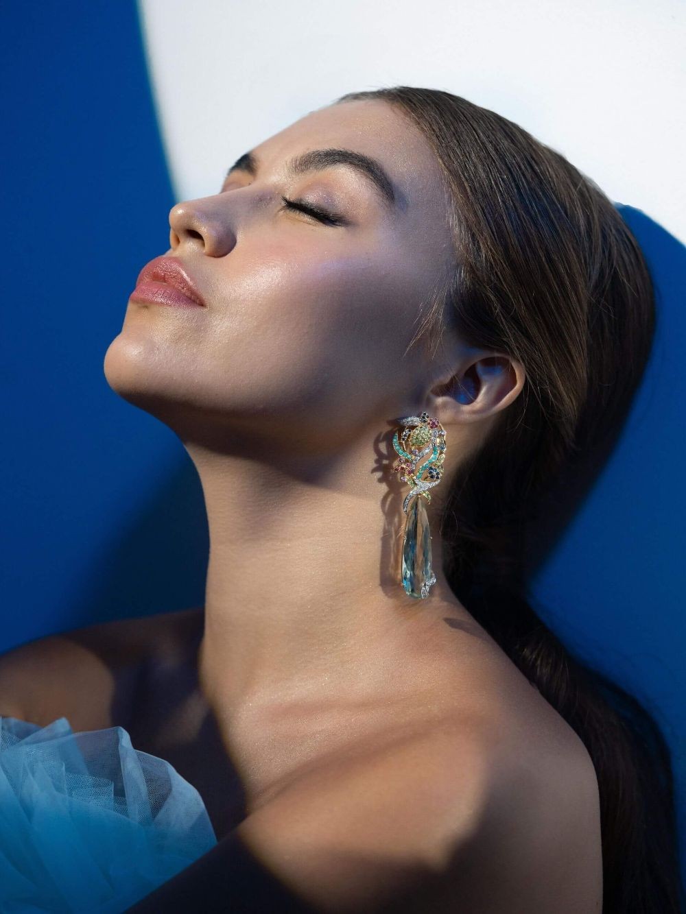 Solar ripples cascade in perpetuity in these yellow gold earrings with accents of white enamel. Ivory white and a golden glow interlace and wind around themselves in stellar incandescence. A shiny cosmic dance.